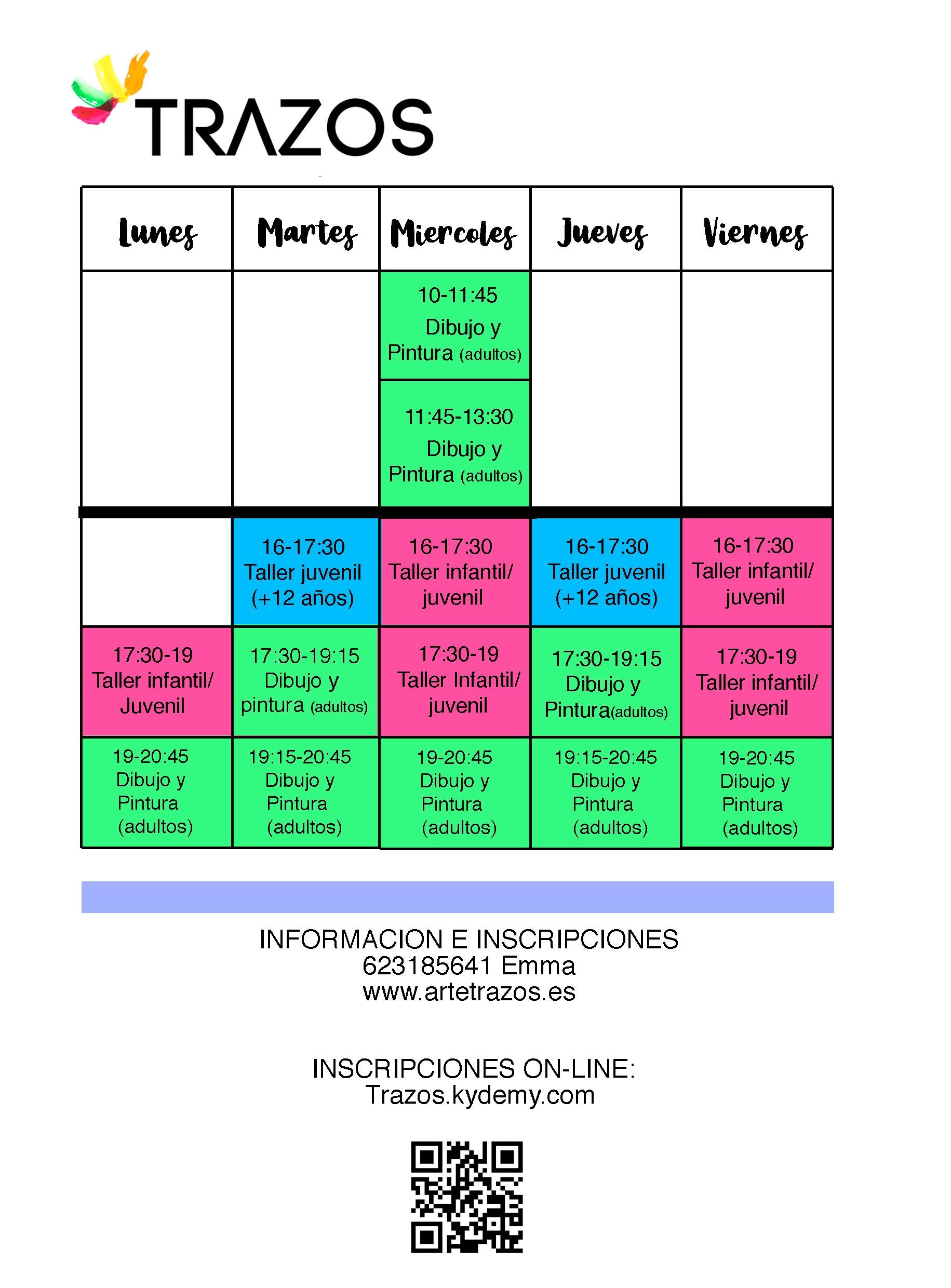 *Las clases del taller infantil tienen una duración de 1 hora y 30 minutos.